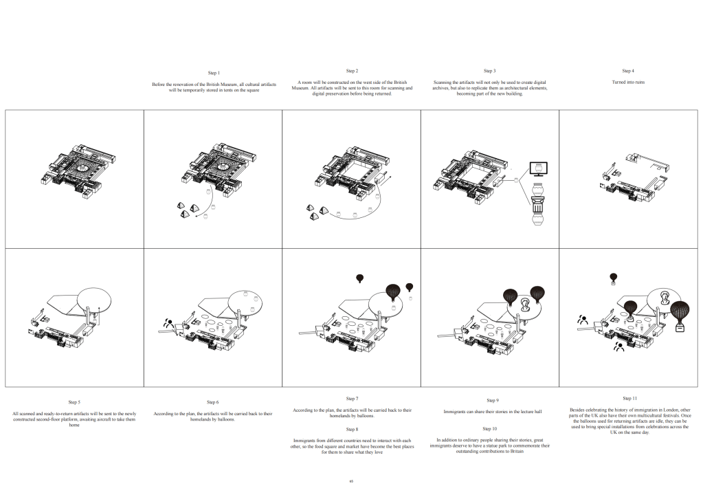 There are two forms in which architecture becomes a ruin: one during its construction, and the other after its abandonment. Can we return architecture to the state of a ruin-in-construction? The British Museum collects and stores objects marked by colonial histories from across the world, yet as these artifacts are repatriated and liberated, the empire begins to confront its own past. In this reversal, the building shifts from a collector to a releaser—an inversion that once again renders it a ruin.